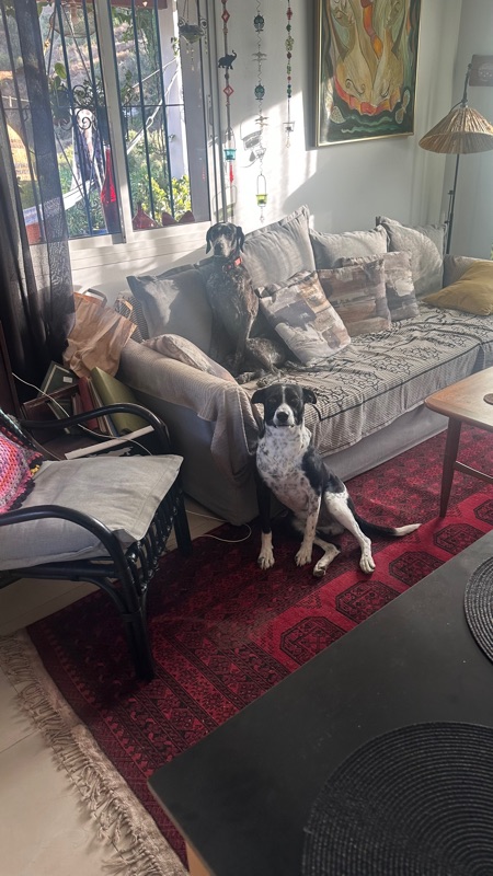 Britta skulle åka och handla så jag kallade in Walter så han inte skulle springa med. Problemet är att när jag gör det så tror Ravioli att han också heter Walter