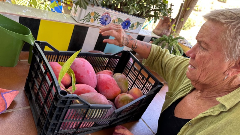 Körde sen runt dalen till Antonio för att skaffa lite mangos som han just nu håller på skördar. Han visade oss då lite hundvalpar. De beter sig väldigt annorlunda och verkar vara rädda för människor. Kanske för att de har så lite kontakt med oss tvåbenta. det här är lite mer det gamla spanska sättet att hantera hundar. Lite mer som med boskap, får eller höns. Man tar alltså inte in dem i lägenheten eller sängen. Men man är heller inte elak.
