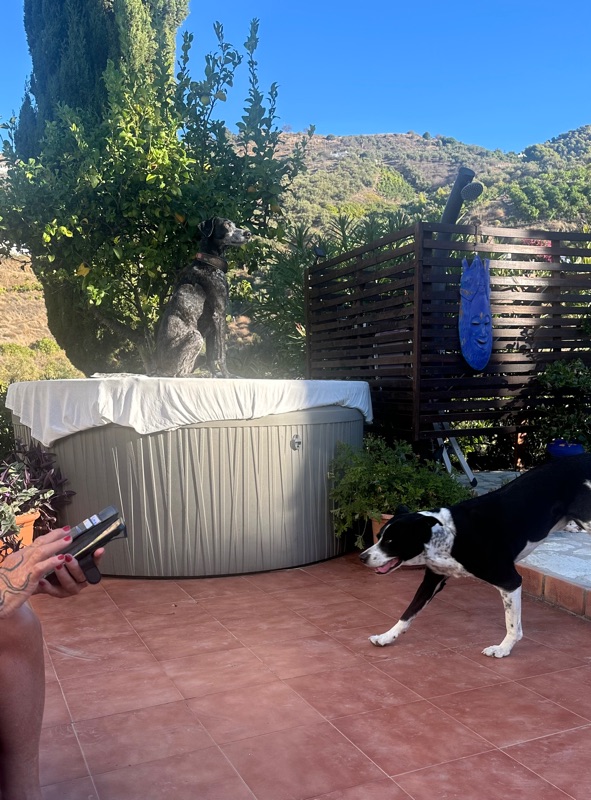 Walter vet var han ska hitta de första strålarna. De (Han och Ravioli) har just kommit tillbaka efter en morgonrush ända upp till Simons stora hund. Tack och lov inget bråk.