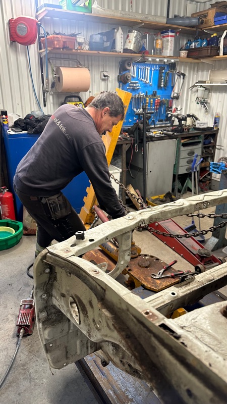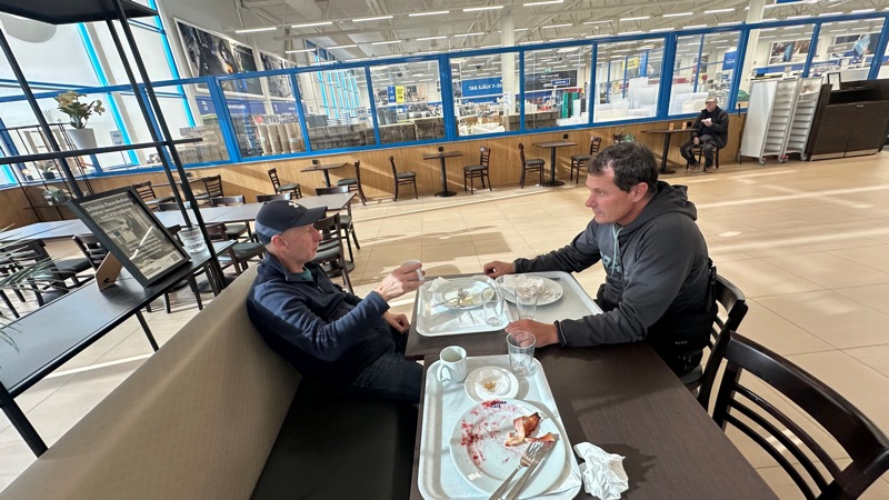 Mycket förberedelser är det. Nu lunch på Biltema. Jan-Erik är arbetsledare o pekar hur vi ska göra Erik är helt suverän självgående mekaniker.