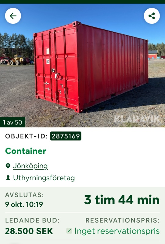 Skulle vilja ha tag på en isolerad container att ha rallybil och verktyg i. Men hoppsan vad de kostar.