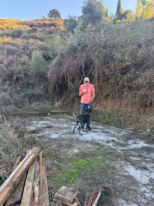Walter får vara byggledare. Ärligt så har jag börjat lite visselträning med honom. Han vill gärna dra upp till grannen o käka upp deras hundars mat så nu kör vi med visselpipa o hundgodis. Verkar funka bra.