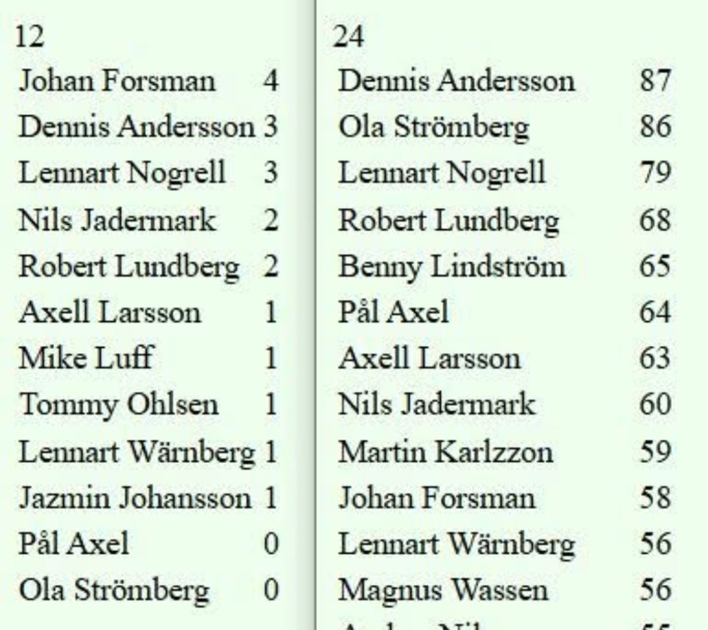 Tyvärr kammade jag noll denna gång medan Dennis prickade tre. Nu leder han inför sista racet idag. Tror segerchanserna försvann där.