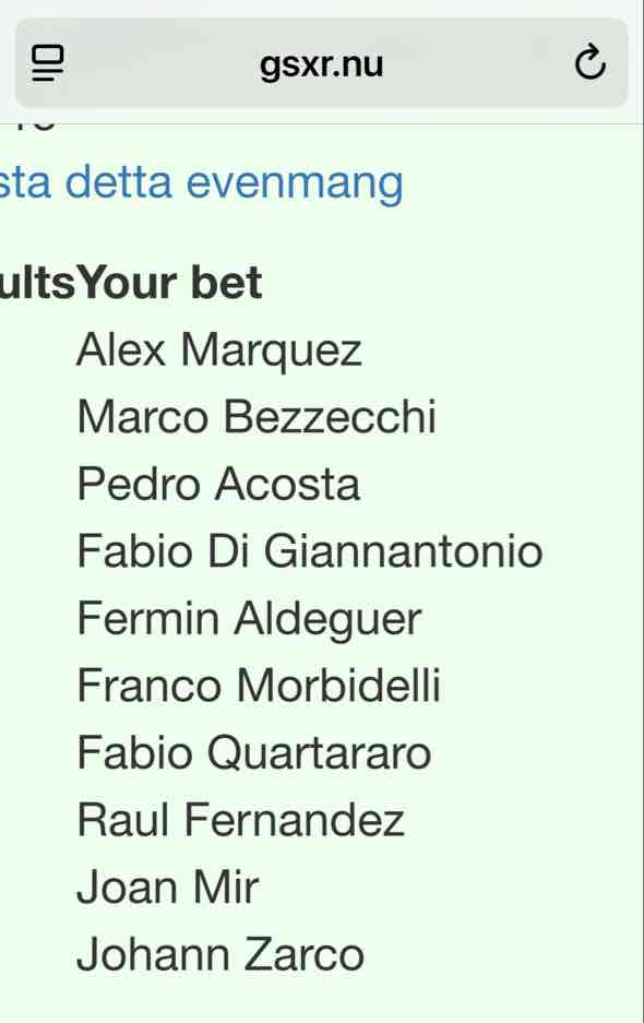 Det är åxå sista gången vi bettar om de tio främsta placeringar i Sprintracet idag. Jag leder ju med futtiga två poäng. Skulle kunna rösta taktiskt och samma som min konkurrent Dennis. Men jag är inte den typen. Game on!