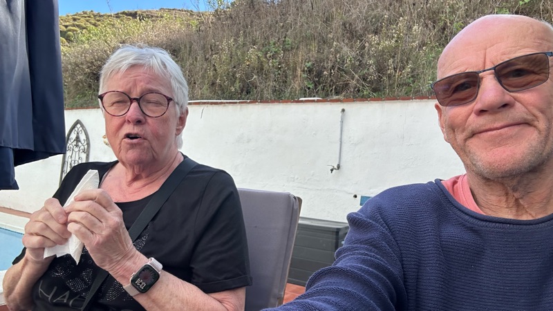 ...med sin Sven, gjorda sig omaket att komma förbi. Börjar bli tätt. De var ju här nyss (2018). Vi lär täta på det. Väldigt givande o trevligt. De hade bråttom hem till Nerja.