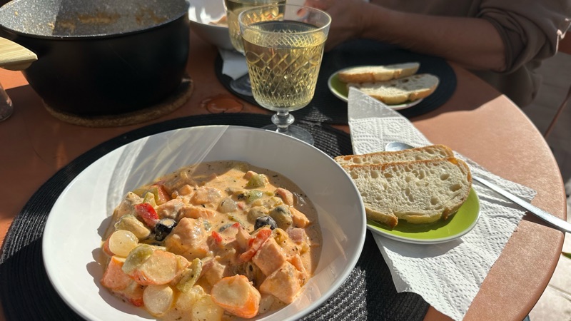 Klockan sju åkte vi in till Saluden. Britta skulle ta Covid- och influensavaccin.