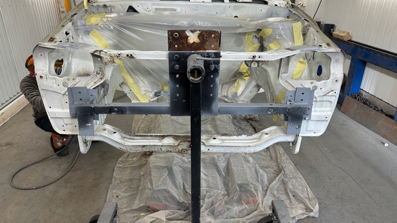 Nu har Lazlo en hel och fin front som är rak. Nu ska det tillverkas skyddsplåtsfästen mm.