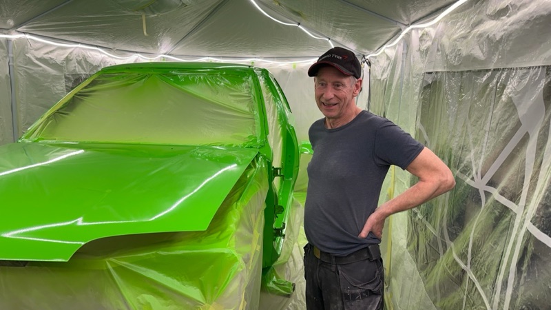Idag kom Erik upp till Sukkafabriken i Blötberget. Lazlo har fått en ny motorhuv bl.a. Nu är det rätt färg på även den.