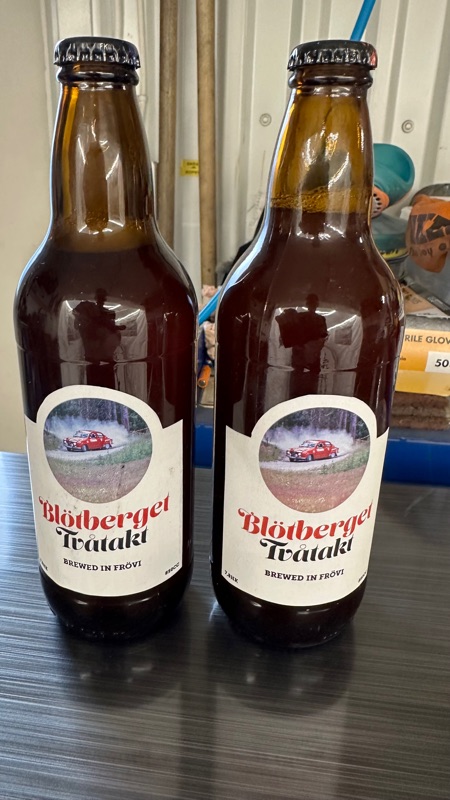 Han hade med sig ett par jättevackra ölflaskor till JanE. 😁 Han som inte dricker pilsner. Nåväl, jag vet han har codrivers som gör det. 😉