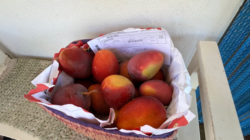 Nog för att vi har egna... men visst är det mysigt när grannar har varit här med en korg mango 🥭 medans vi var borta ♥️. Den här gången var det Loli o Javier som varit på besök. 🙏